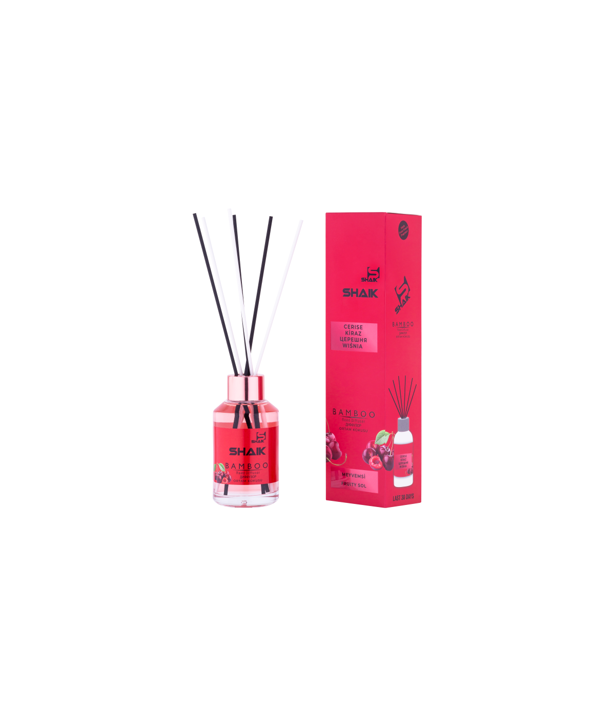 Pudrowy, owocowy Shaik Zapach do domu Wiśnia to ekskluzywna mieszanka, powstała na bazie doskonałej jakości olejków aromatycznych. Wiernie naśladują one zapachy stworzone przez matkę Naturę. Proponowane przez nas drewniane patyczki zapachowe roztaczają we wnętrzach słodkawy, uwodzicielski, idealnie wyczuwalny aromat, który utrzymuje się w nich przez 30 dni.